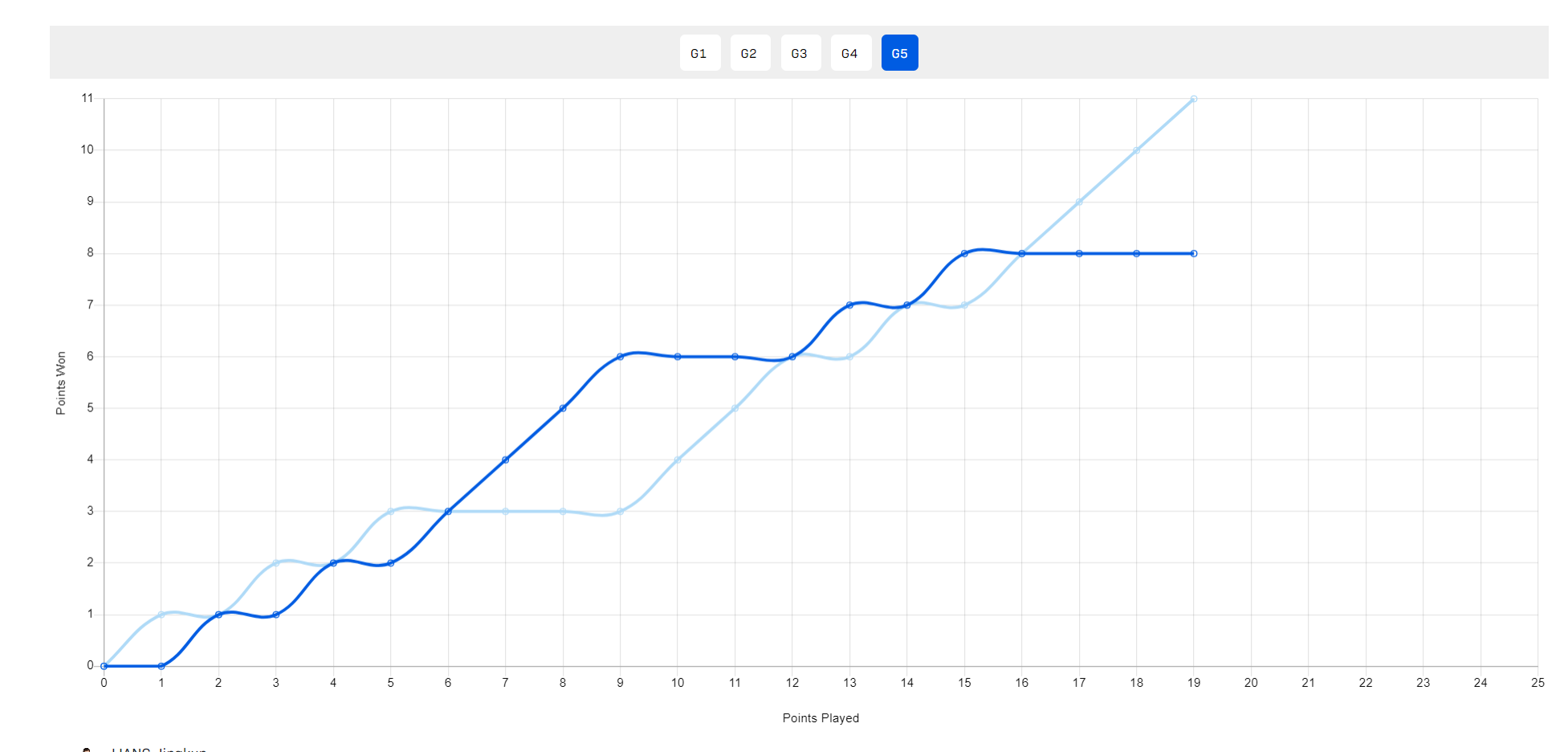 决胜局,梁靖崑一度6-3领先,随后梁靖崑直接崩盘被周启豪追到6-6,梁靖崑7-6后又被周启豪追平7-7,梁靖崑8-7反超,周启豪再度追平8-8,从这里梁靖崑又崩盘,周启豪一波3-0直接拿下胜利。